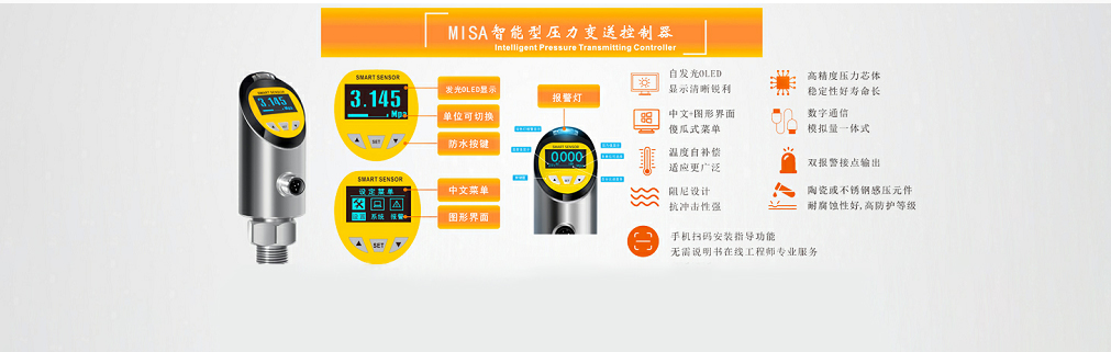 數顯壓力開關PK40型 此產品結構緊湊,堅固耐用,顯示器外殼可以自由旋轉350°,適用機械設備不同位置的安裝,廣泛應用于各類機床、泵和壓縮機、液壓/氣動系統、和機械設備制造壓力測量領域。 產品采用高性能的調理芯片及集成電路,將傳感器毫伏或毫安信號轉換成標準電流或數字信號,還可以快速設置開關量信號輸出,可以直接與上位機、PLC、各類智能儀表及控制監測平臺直接通訊。 產品壓力范圍寬:-0.1MPa.0..100MPa.精度可以達到0.2%FS,產品長期穩定性優越,穩定可靠。